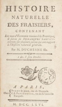 It was the first serious study of a plant family and attempted to classify strawberry species, identify the date of their introduction, and assess methods of cultivation. Duchesne also discussed the various experiments he had carried out, and included a complicated ‘genealogical’ table showing the relationship between the various species and varieties, which modern botanists using genetics and DNA have found remarkably accurate.