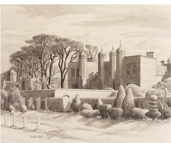 The Pilgrim Trust did what most grant awarding bodies do: they offered far less than was asked for. However their £2500 was the seed corn, and the committee chaired by Clark got to work and invited about a dozen artists to submit work. When news got out they were overwhelmed with other enquiries and got down to the serious business of assessing and then selecting artists and matching them to possible subjects. They consulted widely with groups like the Campaign for the Protection of Rural England, the Society for the Protection of Ancient Buildings and the Georgian Group.