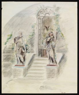 Chiswick House Garden, with statues of Caesar and Cicero, and Vase from Hadrian’s Villa, Archibald Standish Hartrick