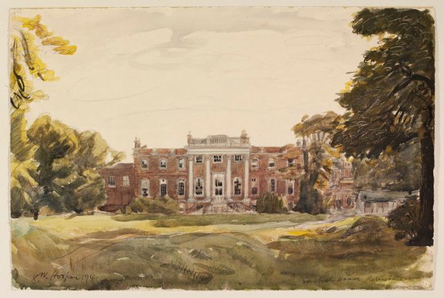 Finally they included “Country Houses and their Parks” which they thought might “be largely abandoned after the war and which will either fall into disrepair or be converted into lunatic asylums, sanatoriums etc in which case they will be largely surrounded by huts and outbuildings.” They even gave notes to the artists suggesting their works should be “records showing the elegance and unity of country houses in their last phases, but should have sociological as well as artistic value.”