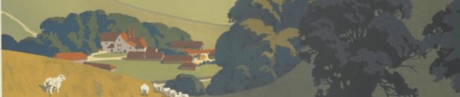 In short the 93 artists had the task of painting scenes which captured a sense of our national identity, through recording both the exceptional and the mundane parts of our landscape and heritage. Herbert Read, the critic, put it like this: they were to give us “the colour and atmosphere of a scene, the intangible genius loci… this intangible element which is so easily destroyed… Better than the wordy rhetoric of journalists or politicians , it shows exactly what we are fighting for – a green and pleasant land, a landscape whose features have been moulded in liberty, whose every winding lane and irregular building is an expression of our national character.”