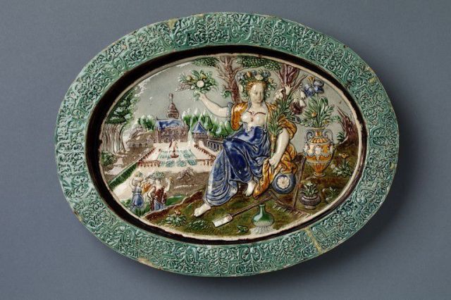 Earthenware Dish showing Pomona, probably French c.1600-20 V&A