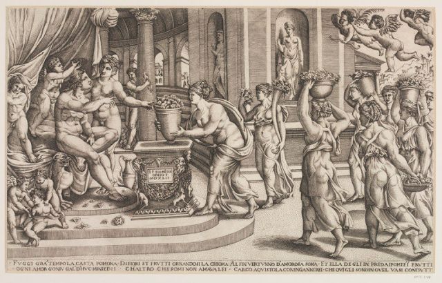 Marriage of Vertumnus and Pomona, print after Baccio Bandinelli, 1542. V&A
