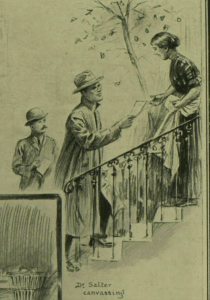 Dr Salter canvassing in 1909 Bermondsey by-election.