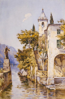 Ella’s first major commission was to illustrate Richard Bagot’s The Italian Lakes published in 1905. Her paintings “radiated sunshine and their subtle colouring stirs the imagination” crooned one reviewer. [Belfast Newsletter, 31 October 1905]