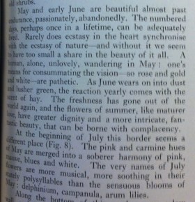 Around the house were the usual kind of things – stone flagged terrace, some box edged beds, with stonecrops growing in cracks, lots of pots, colour coordinated tulips. And here Hussey turns lyrical, indeed almost surreally rhapsodic as you can see from the paragraph below: