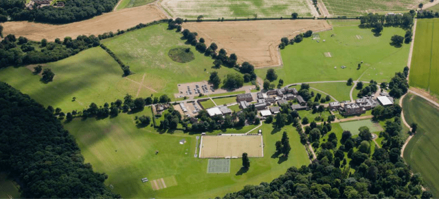 An accretion of school buildings, sports facilities and arable fields detract from the character of Langley Park, Norfolk. (© Historic England Archive 29911-027)