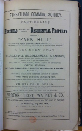 Almost two years to the day after the first auction, Park Hill was put back on the auction block again, but again failed to reach its reserve price. Debenham’s then re-issued their particulars with a note in red added to the top of the front page.