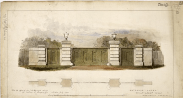 Park Hill: plan and elevation of entrance gates with smooth rusticated piers, by Papworth, RIBA