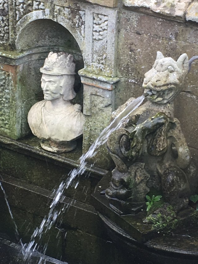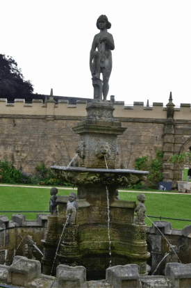 Sir William Cavendish held banquets at both houses by entertainments penned by Ben Jonson. At the castle it was a masque entitled Love’s Welcome to Bolsover, which was actually performed in the Fountain Garden. Unsurprisingly it had the theme of love in all its forms , but also highlighted the divine status of kings. Roy Strong suggests that the fountain was a physical expression of Caroline court mythology deliberately created for this visit. Certainly its design ties in with the elaborate Mannerist architecture and interior decoration inside the Little Castle.