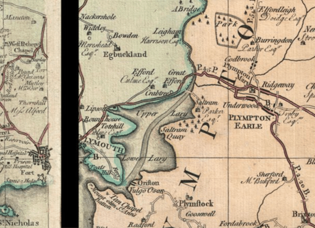The one thing that does survive is a drawing, from c.1749, of the amphitheatre overlooking the river Laira, which implies the long series of zig-zag ‘prospect’ walks that descend the steep slopes through Saltram Woods to the riverside and to Saltram Point were also already in place. There is however no indication of a park being in place on the 1765 county plan, although, as can be seen, one is shown at Boringdon.