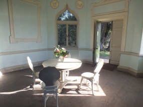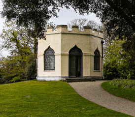 The couple also took a great interest in improvements, both architectural and horticultural, soon commissioning Robert Adam to create a series of neo-classical rooms inside as well as redesign the approaches to the house. Nathaniel Richmond, who had worked for Theresa’s brother at Stanmer in Sussex, supervised further developments in the gardens and grounds, including the Orangery [1775] whilst her brother designed the octagonal Gothick Castle summer-house.