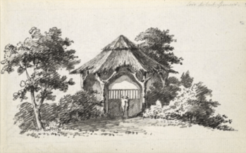 A rustic cowshed at Woolbeding, Nr Midhurst, by George Stanley Repton, 1800, RIBA Library