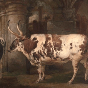 And why all this fuss? After all we’re only talking about cows. We’re used nowadays to intensive breeding programmes to develop particular blood lines and qualities, but this had started in the 18thc as part of the Agricultural Revolution. It became almost an obsession to many landowners with several beasts becoming famous, touring the country and having their portraits painted. And the top quality desired then was size.