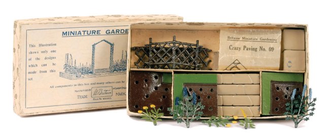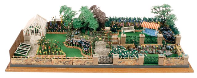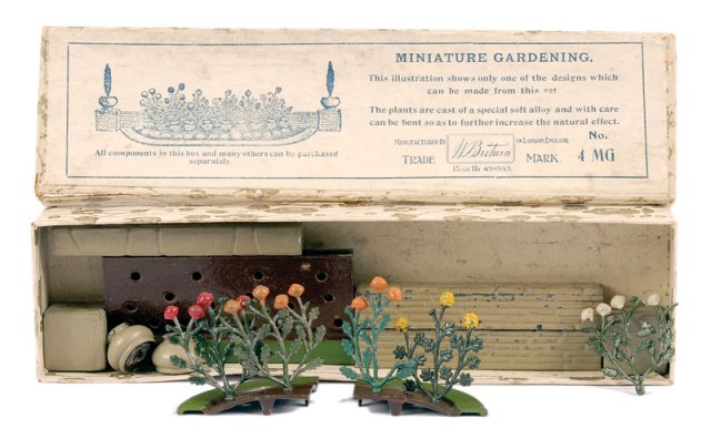 Britains was sold by the family in 1984. Since then it has changed hands several times and is now part of First Gear, an American manufacturer of “collectibles”, although the Britains name has been retained for some of the ranges. Sadly these don’t include miniature gardens, and  the Britains Collectors Club is only concerned with the toy soldiers rather than toy gardeners and their flower borders.