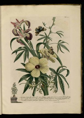 Amongst other prominent botanical works used were by Jacob van Huysum who provided drawings for Catalogus Plantorum, for the Society of Gardeners, Elizabeth Blackwell who published A Curious Herbal in 1737-9, and JC Trew’s Plantae Selectae.