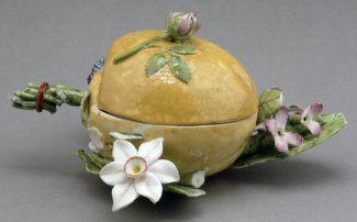 Box and cover in the form of a lemon, with narcissus and rose decorations, c1755 British Museum