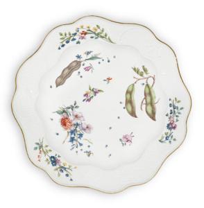 In these early factories porcelain design and manufacture was often undertaken by silversmiths or goldsmiths rather than professional potters, and most of the craftsmen employed were of French or Flemish origin. The Chelsea factory was in Lawrence Street, close to the Ranelagh pleasure gardens in London, perhaps to attract aristocratic patrons. Although little is known of the Chelsea factory’s earliest years, Sprimont adapted many familiar silver designs for his new and highly fashionable porcelain pieces for the table, while others were taken from Meissen models. They included a range of tableware inspired by plants.
