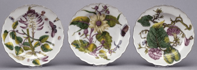 Three Chelsea “Hans Sloane” plates, c.1755 British Museum