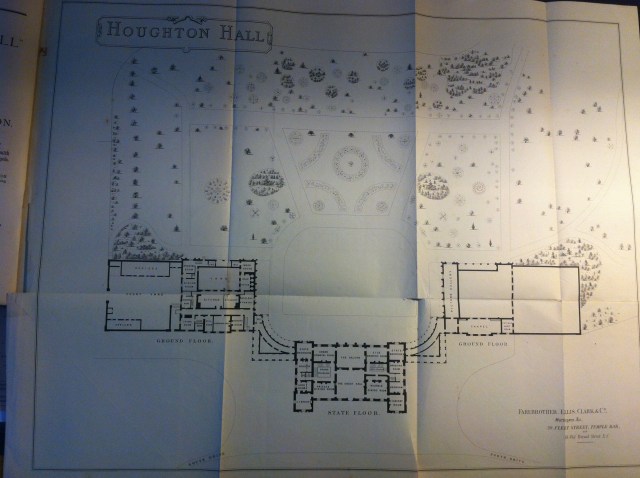 And finally there’s the map published by Isaac Ware in The Plans, elevations and Sections of Houghton in 1735. This is on a different scale and shows more alterations, notably the replacement of the walks, alleys and quarters by block planting. There is some doubt [when isn’t there!] about whether this was actually ever done. One other possibility is, of course. that this may simply have been in part a simplification due to the scale of the cartography and the comparative smallness of the plate.