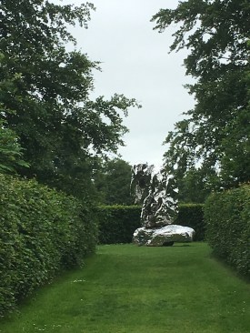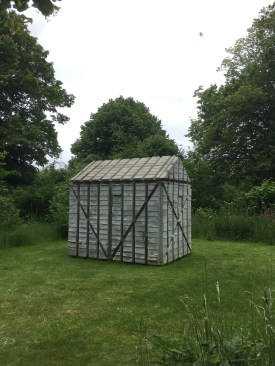 Amongst other interesting pieces in the groves  and grounds include Zhan Wang’s Scholar’s Rock, modelled in stainless steel around natural rocks, Rachael Whiteread’s Houghton shed, and Stephen Cox’s  Interior Space 2002.