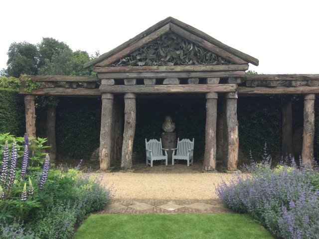 The Rustic Temple sits at one end of a spectacular double herbaceous border recently refurbished by my friend Virginia Worsley. This, cleverly, is wider at one end than the other which reinforces the shift from cool to hot planting.