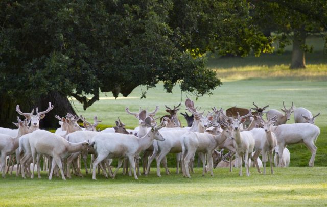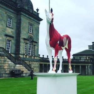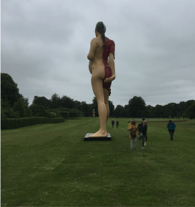 The nearby parts of the grounds are also currently host to a series of large-scale pieces also by Hirst, which according to Michael Glover, art critic for the Independent are “fairground-freaky, upscaled giants in colours to shock and amaze”.   Luckily Houghton’s grounds are vast, sometimes seemingly never-ending and there, as Glover notes, “Hirst’s statues are a laugh. A flayed unicorn, a couple of colossal people with their skin off. All good fun. Yet it is Lord Cholmondeley’s herd of white deer that elicit gasps when they wander through the woods like a cloud.