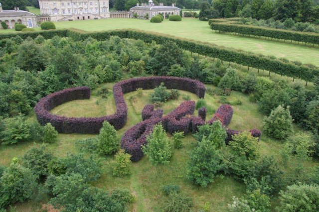 Most of the art works are semi-hidden, tucked away in one of the wildernesses or woodland groves.   “The Sybil Hedge” an “artlandish” living sculpture by Anya Gallacio, is a copper beech hedge laid out to form  the signature of the marquis’ grandmother, Sybil Sassoon.  Unfortunately you can only see the  full effect from the air .