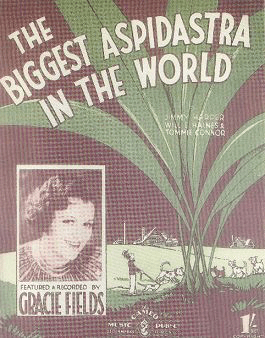 But, as you can see,Orwell was not the only one – or even the first – to lampoon the aspidistra. Gracie Field’s song didnt help either. In 1938 she sang of the aspidistra “in the flower pot on the whatnot near the ‘atstand in the ‘all” which had been there for years. In a botanically unusual attempt at hybridization it was crossed with “an acorn from an oak tree” to make it “strong and tall”, with surprising consequences. Listen to the rest of the song in the original version at: https://www.youtube.com/watch?v=6XROMw3Z4e0