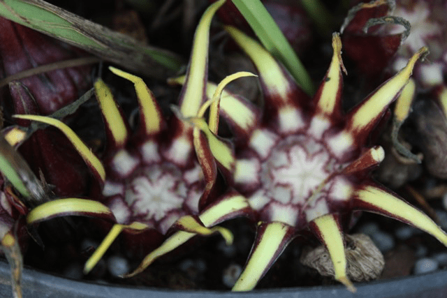 As you can see they flower at ground level, or sometimes even below ground level, directly off the rhizome. To makes matters more difficult the flowers are often brown or maroon and hard to spot so many people had probably never realised their own plant flowered.