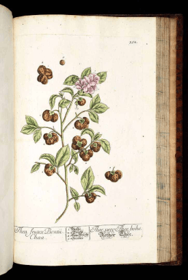 In 1696 Petiver was introduced to James Cuninghame, a ship’s surgeon, who was sailing to China later in the year and offered to search for plants for him. Petiver went to Nieuhof’s account and also to the most-up-to-date account of China, the newly published Nouveaux Memoires sur l’etat de chine by father Louis Le Comte’s narrative. From them he drew up a list of 80 Chinese plants for Cuninghame to collect, including the mysterious chaa.