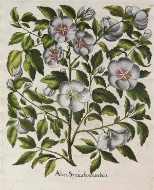 Hibiscus syriacus L. [as Alcea syriaca flore candido] from Besler’s Hortus Eystettensis, vol. 2: (1613)