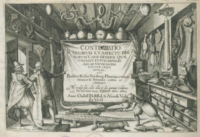So why did Besler and the Bishop undertake this enormous task? I suspect the answer lies in  two early modern social and intellectual phenomena. The first was  the collector’s cabinet of curiosities or wunderkammer which helped reveal a gentleman’s interest and knowledge of the world around him. In fact Besler was to go on and write a guide for creating a cabinet Continuatio rariorum which was published in 1622. “The objects …be they of animate species or inanimate, terrestrial or aquatic, and those rarer specimens, which do not occur here, there and everywhere, fascinated me from my earliest years and so inspired me that for many years I have devoted myself to collecting them.” [Click here for more information] is