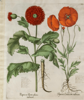 As the first of its kind, the Hortus Eystettensis encouraged  the owners of other notable gardens to commission a “florilegium” [lietrally‘a gathering of flowers’] not just for their own pleasure but as way of showing off. One downside of that is they rarely contain any useful text because they are simply statements of possession but they do provide  a record of the arrival of new and exotic plants  in Europe.