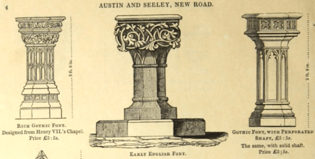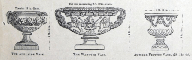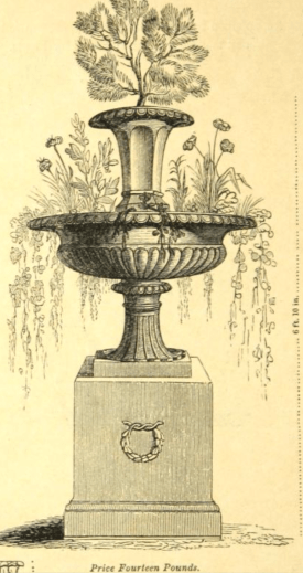 In 1841 they published their first joint catalogue, Pleasure Grounds etc. from Austin’s address in New Road which included a collection of designs from garden vases, tazzas and fountains to statuary, church fonts and porticos. Loudon recommended people to go and see “the splendid assemblage of sculptural works.”