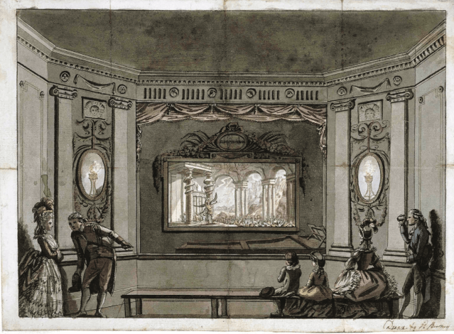 detail from a sketch of the Eidophusikon by Edward Burney, British Museum