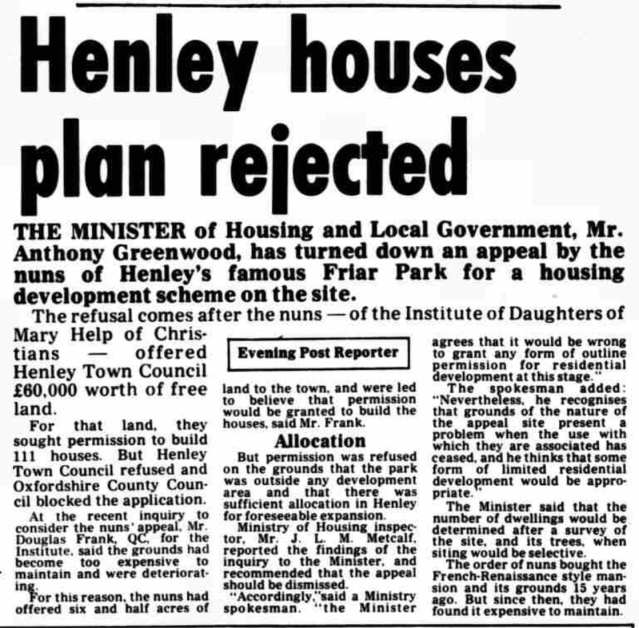 As a result the nuns tried to turn property developer and over a 5 year period put in seven different proposals ranging from small developments or a block of flats on part of the estate to a scheme for complete demolition and 221 houses. All were refused, and refused again on appeal. Henley Council tried to buy the estate for community use but their move failed. What is interesting, indeed salutary, is that at no point as far as I can see was any mention made of the quality and significance of the house or its garden.