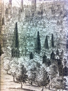 In 1774 long after Nathaniel was dead and Samuel had stopped work, Robert Sayer, a leading London print seller acquired the plates and made a killing by reissuing prints in a whole series of different forms from more affordable single sheets at 18 guineas a set , to collections bound into 3 volumes for 20 guineas. Sayer’s reissue meant that the Bucks images spread far wider than the original largely elite circle – they have been found in India and China – whilst , as Ralph Hyde argued, also becoming “embedded in the public consciousness” in Britain. More than that, Andrew Kennedy believes their style also served as .”the prototypes of thousands of derivatives produced by a community of topographical artists, book and magazine illustrators for years to come” They were still being issued from the original plates as late as 1813