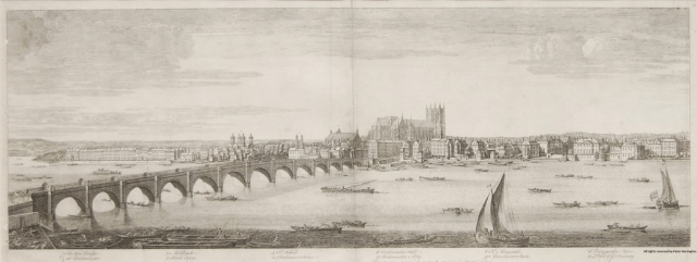 Panorama of London, 1774 edition Plate 1, New Westminster Bridge to Treasury Building.