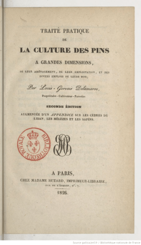In1827 he published the even lengthier-titled and rather bizarre sounding: Historique de la création d’une richesse millionnaire pour la culture des pins, ou application du Traité pratique de cette culture, et conseil aux héritiers de l’auteur de cette création pour l’utiliser dans tous ses avantages which roughly translated means “How to become a millionaire by growing pine trees”