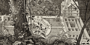 Merian’s Panorama of Heidelberg, 1620 – the garden can be seen on the extreme left
