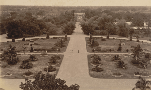 The main gate to the palace with the front garden, from the Curzon Collection, British Library
