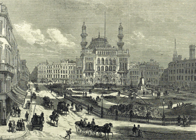 looking from the west side towards the Alhambra Theatre. from Illustrated London News, 4 July 1874,