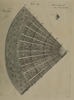 Plum branch cut transversely from Grew’s Anatomy of Plants 1682