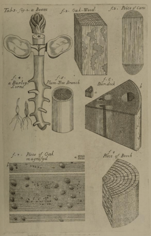 Evelyn drew on the work of others including for example, in the third edition, the latest research being done by Nehemiah Grew, a physician who was later to become secretary to the Royal Society. Grew used the microscope to study the circulation of sap and theorise about the structure of trees and other plants. While early editions of Sylva have virtually no illustrations Grew included a series of fascinating engravings based on his microscopical investigation in The Anatomy of Plants published in 1682.