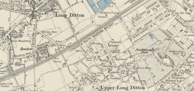 OS 6″ map surveyed 1894 and published 1898. The nursery site is marked just south of the railway line