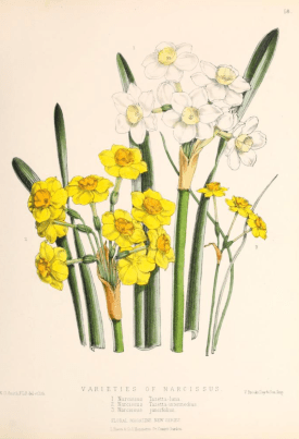 Inspiration for this week’s post came from daydreaming & looking out of the window and noticing some daffodils coming into flower. I remembered that ages ago I wrote a couple of posts about their history: The Daffodil most dainty and their use in decoration: The Daffodil most dainty2