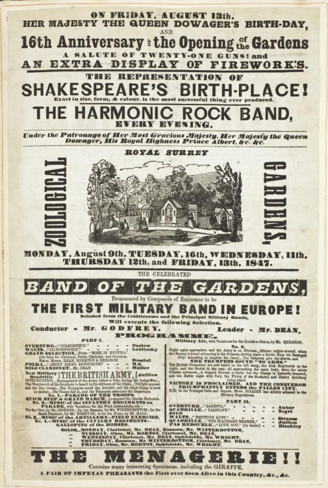 “Nothing is seen but joy and animation,… The performances conclude each night between twelve and one, with a grand display of fireworks.” Unfortunately, despite everything Tyler tried, the gardens slowly went into decline. The rival attraction of the Great Exhibition and then the Crystal Palace finally proved too strong and in 1856 the animals were sold off and the site became simply Royal Surrey Gardens.