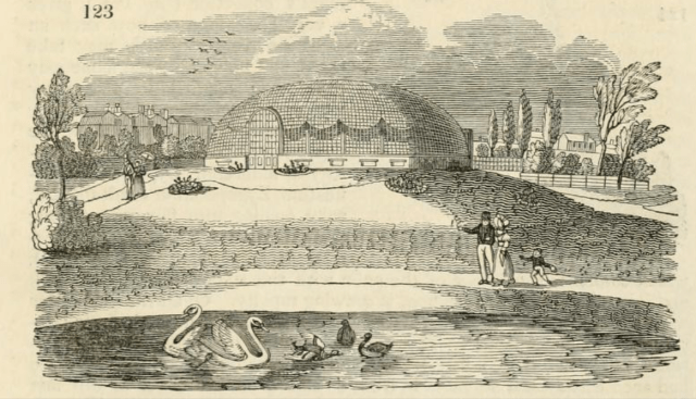 Cross ensured that the animals were very well-housed by the standards of the day. The main building was the largest conservatory in England, a vast dome approximately 300ft in circumference with more than 6000 square feet of glass, designed by Phillips. Its supporting columns formed a colonnade hung with bird cages, where visitors could stroll and enjoy ‘the greatest number of distinct species of climbing plants ever seen together’.