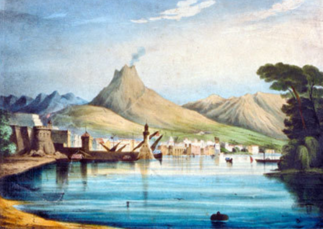 There were also extravagant re-enactments of events such as the eruption of Vesuvius. The backdrop for this was claimed to be the ‘largest picture ever painted’, and was installed behind the lake, which served as the Bay of Naples, complete with a miniature British frigate lying at anchor.